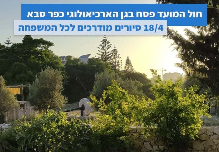 בבוקר יום שישי ה-18/4 בחול המועד פסח נפתח את הגן הארכיאולוגי לסיור מודרך לכל המשפחה.